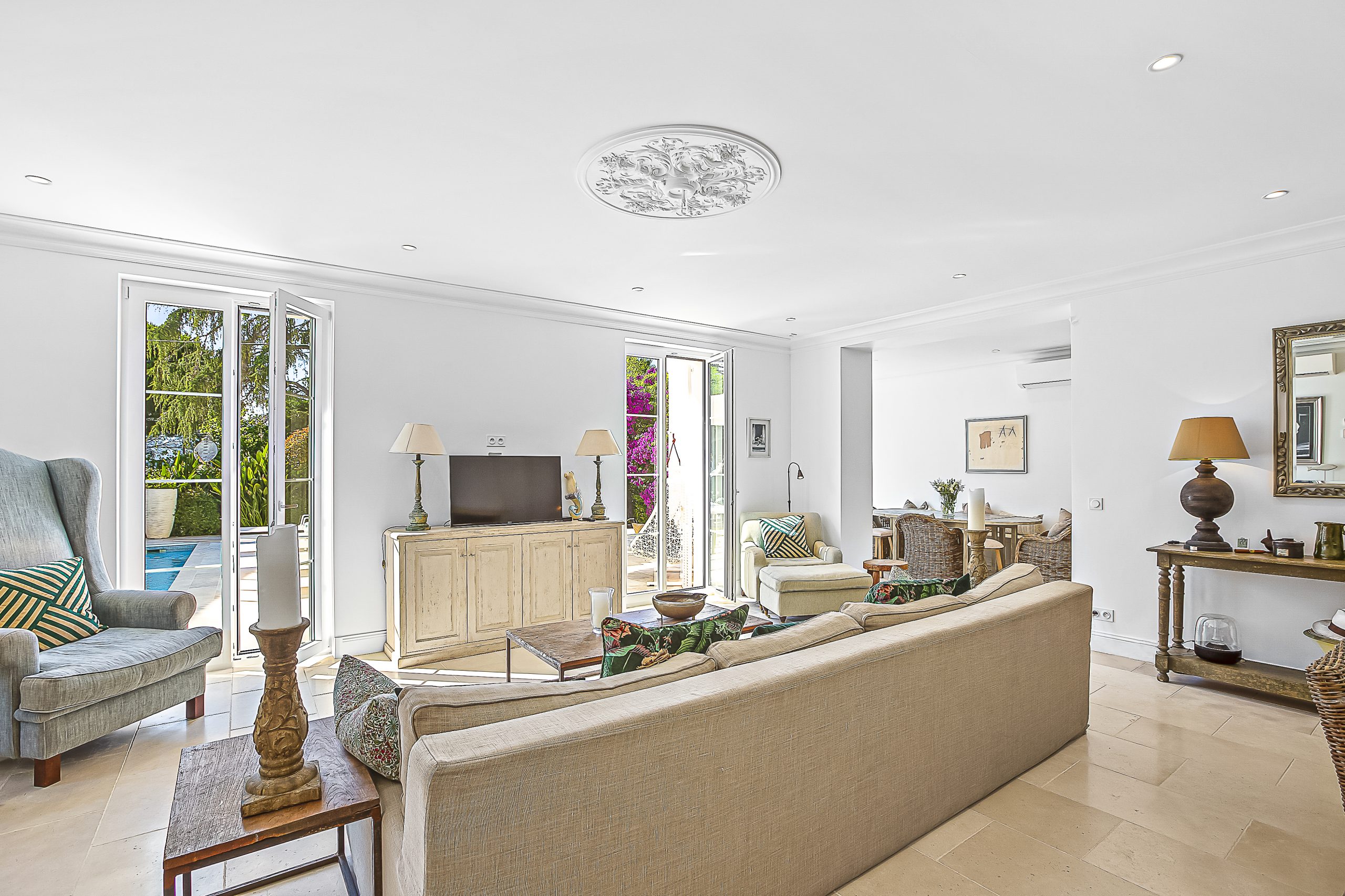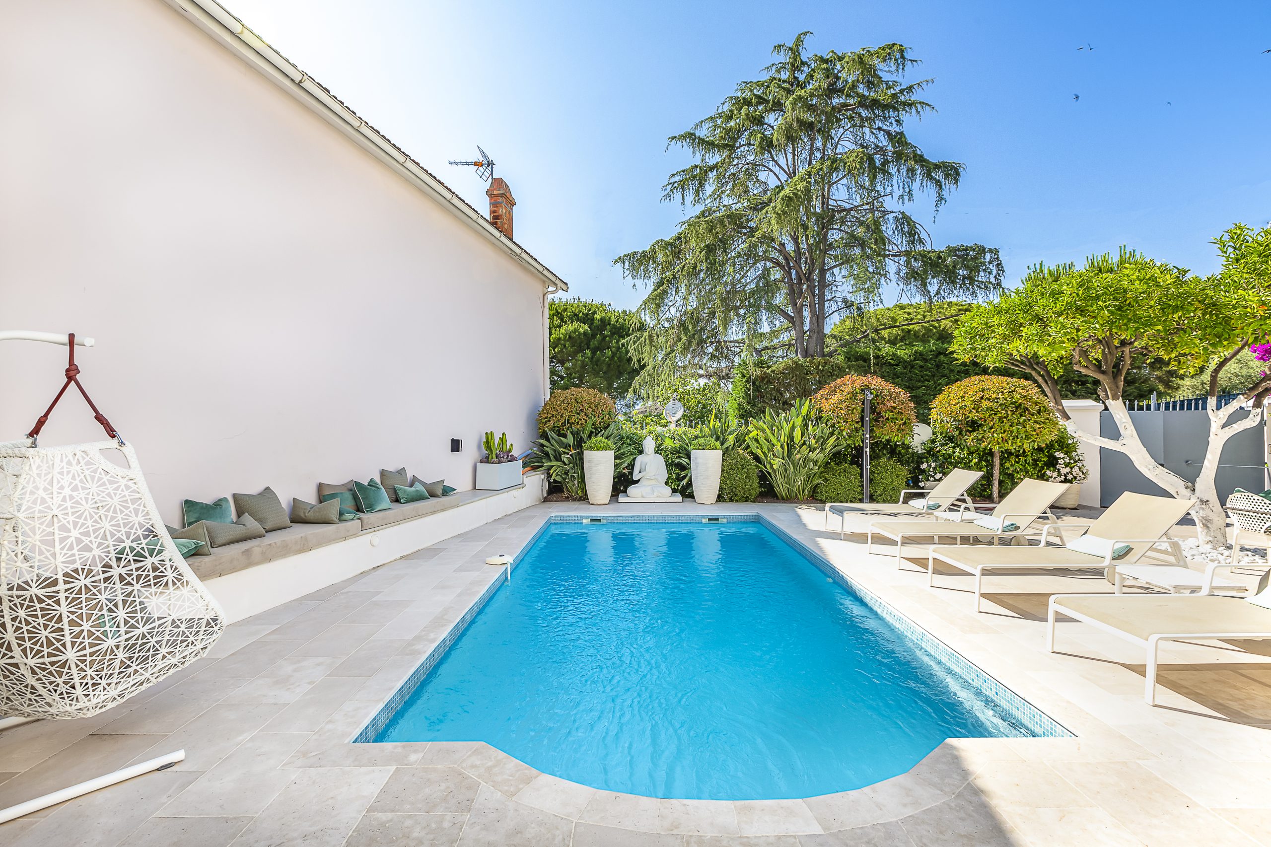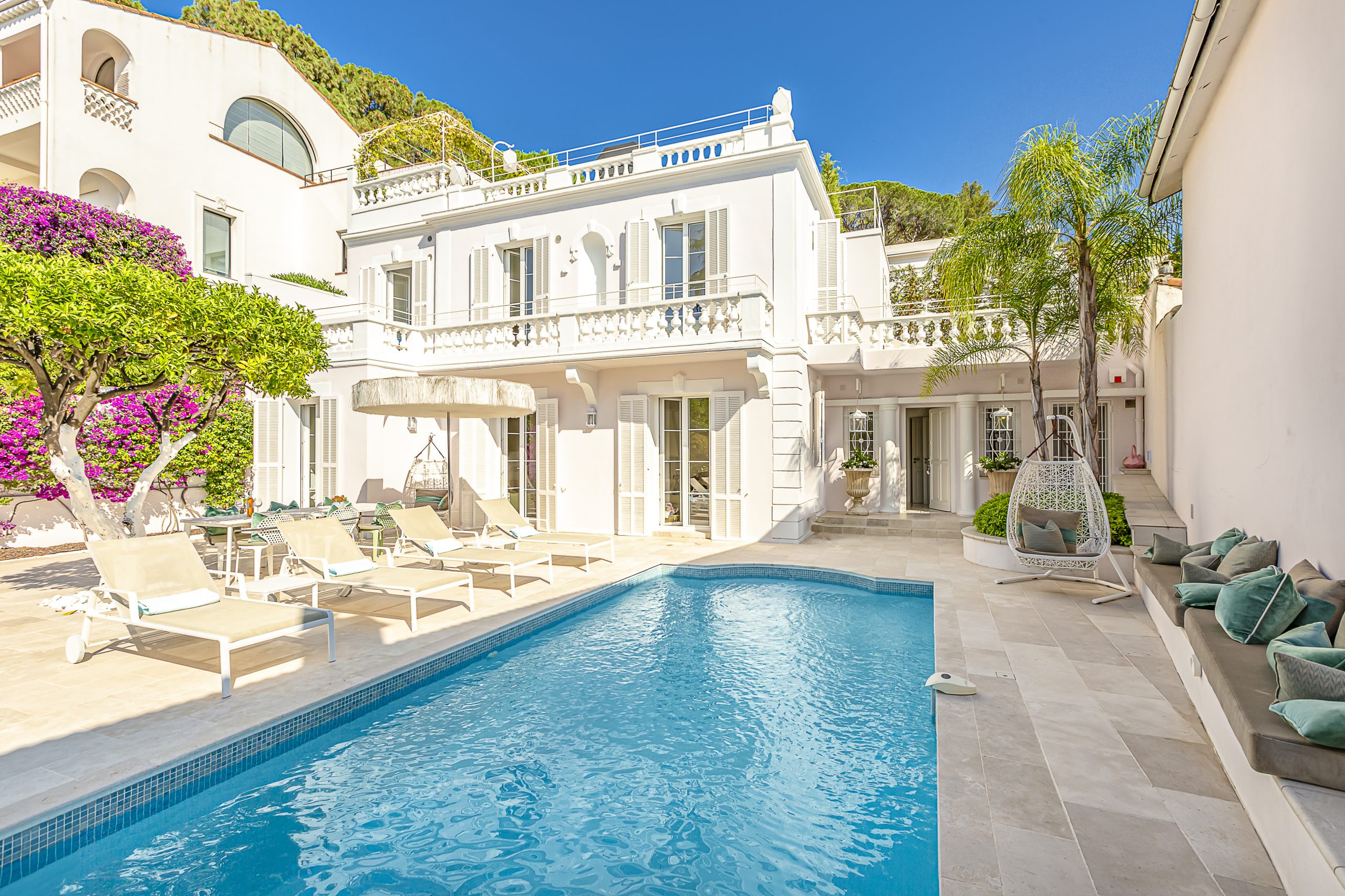 Nestled in the prestigious Cap d’Antibes, positioned between Cannes and Antibes, lies this exquisite retreat. Impeccably renovated, this villa boasts a fresh, contemporary ambiance and is equipped with state-of-the-art appliances, with air con throughout. With 4 bedrooms and 3.5 bathrooms, it offers ample space for relaxation and comfort. Tucked away on a tranquil and private street, the villa provides convenient parking for one car just outside its gated entrance.
