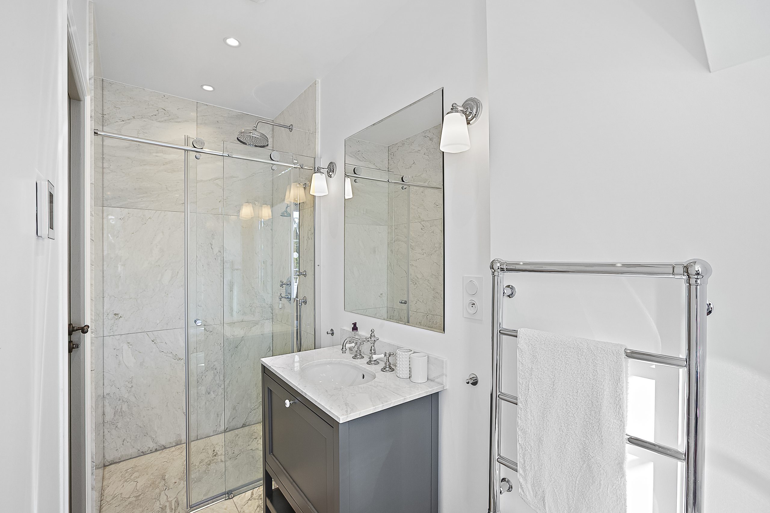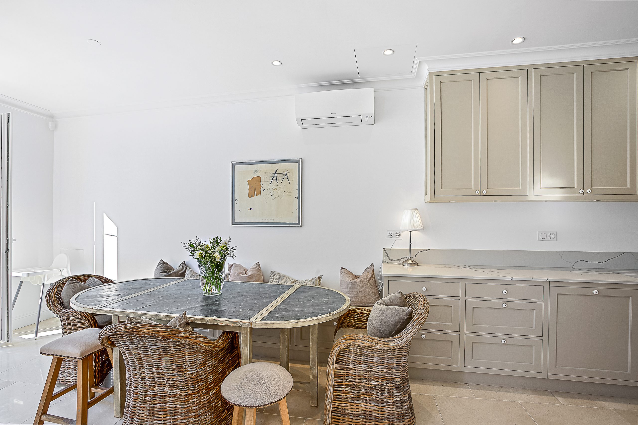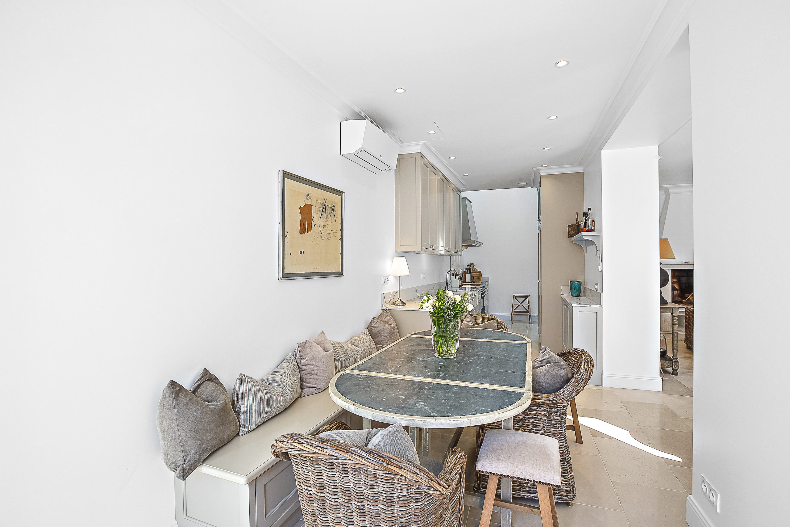 Nestled in the prestigious Cap d’Antibes, positioned between Cannes and Antibes, lies this exquisite retreat. Impeccably renovated, this villa boasts a fresh, contemporary ambiance and is equipped with state-of-the-art appliances, with air con throughout. With 4 bedrooms and 3.5 bathrooms, it offers ample space for relaxation and comfort. Tucked away on a tranquil and private street, the villa provides convenient parking for one car just outside its gated entrance.
