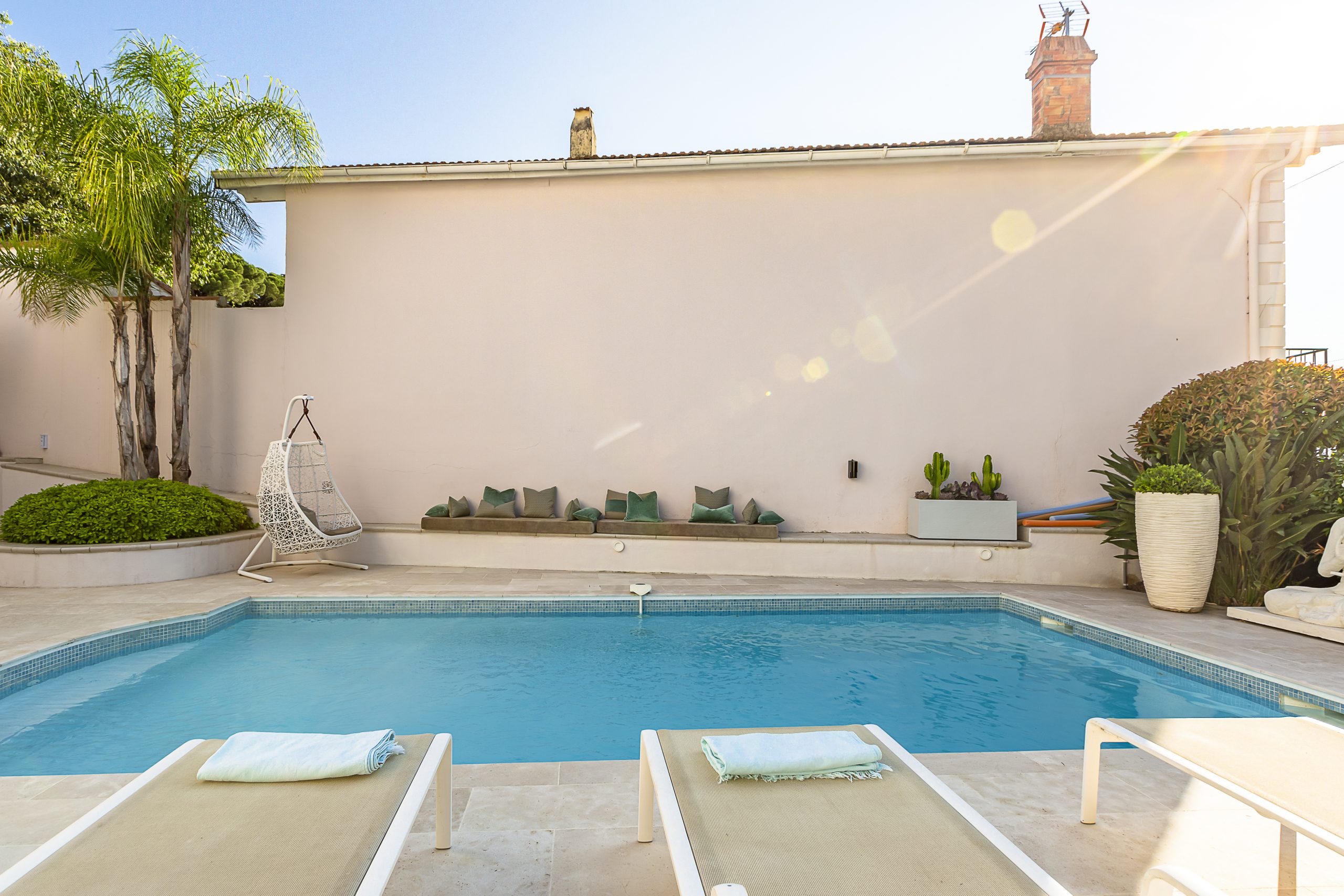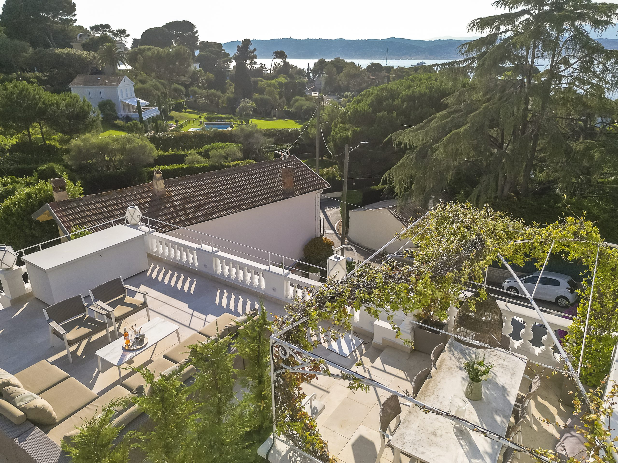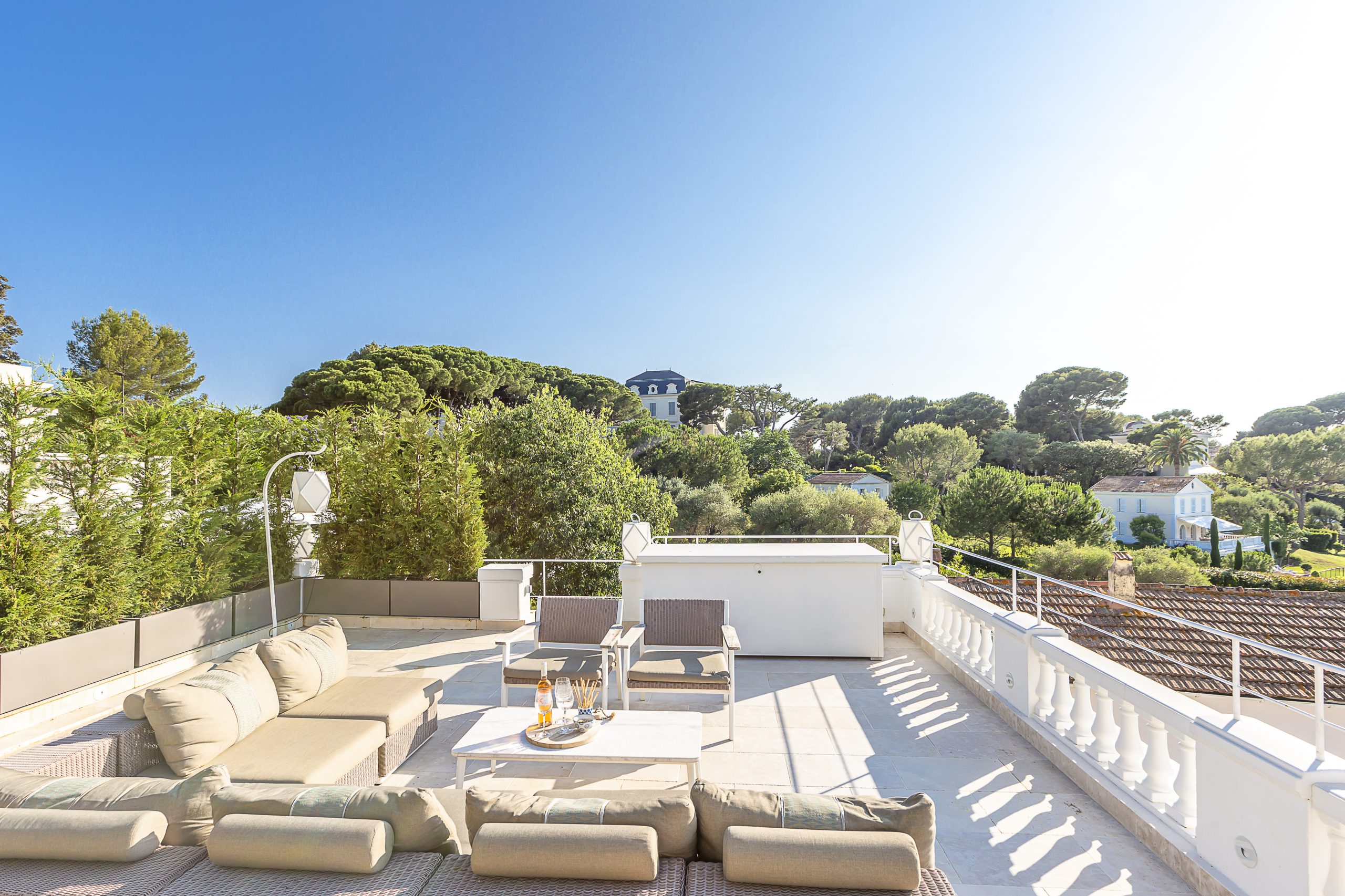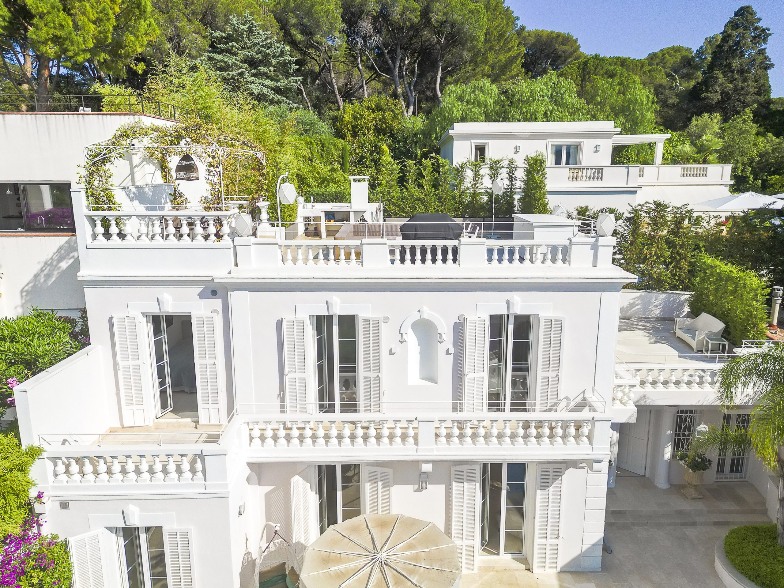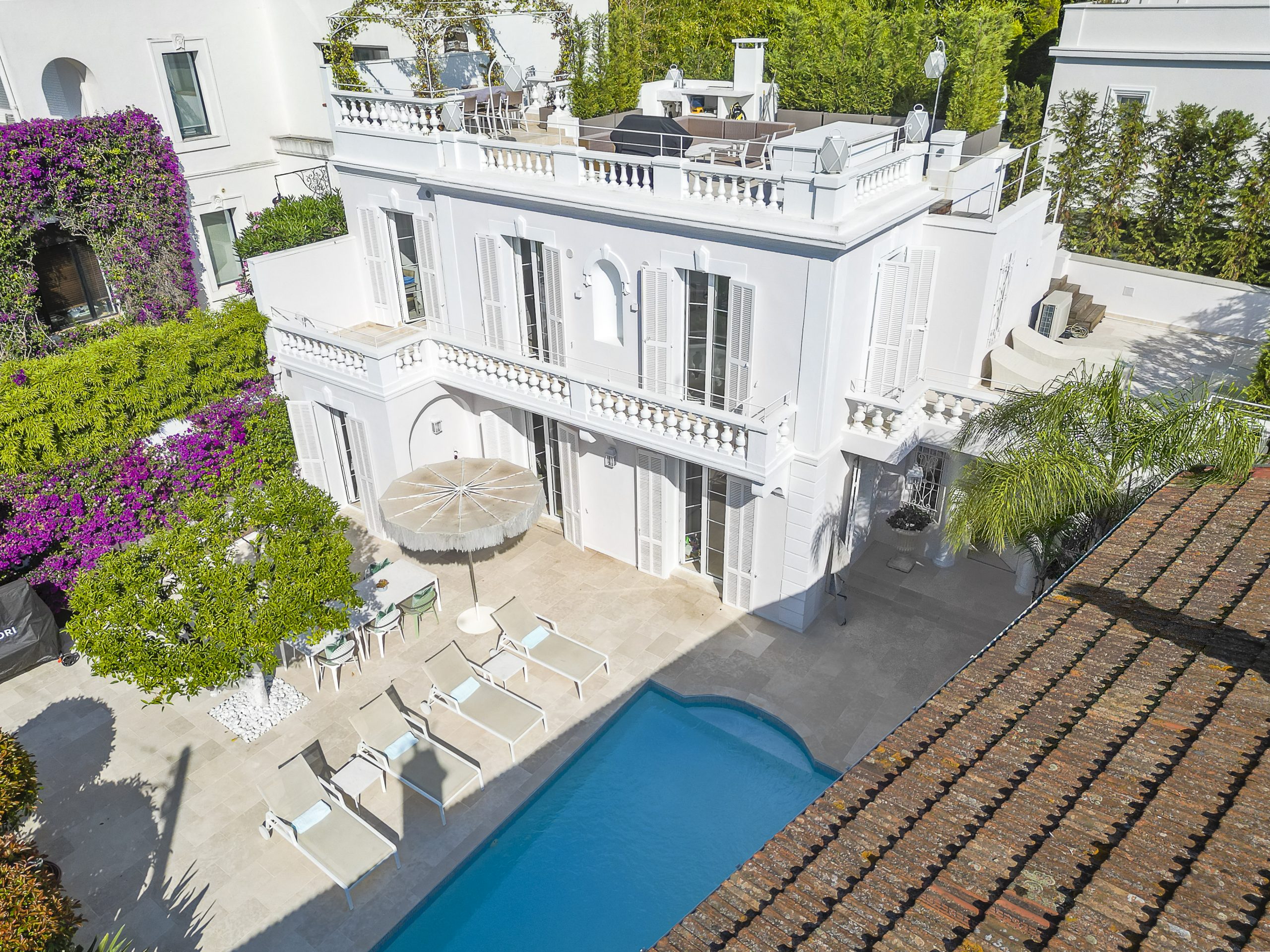 Exuding a blend of modernity and Provençal charm, this stylish villa (200m2) enjoys proximity to the renowned Hotel du Cap Eden Roc. Its inviting courtyard, (100m2 ) adorned with a serene pool area, serves as a haven of tranquility, while the second-floor and rooftop terrace afford breathtaking views of the sea.